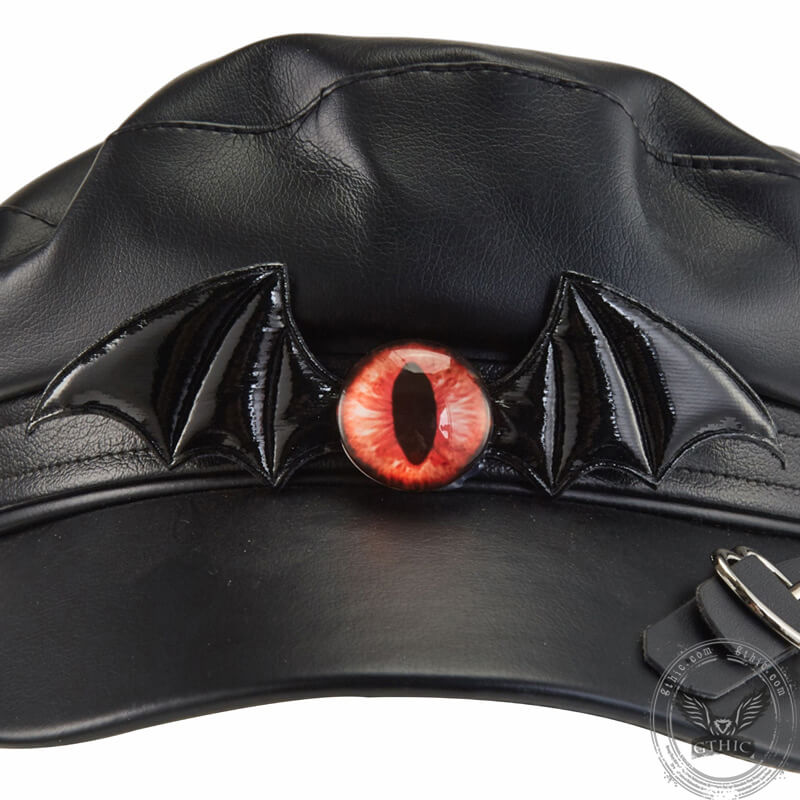 Experience the timeless elegance of our Gothic Devil Eye Bat PU Leather Newsboy Cap. Crafted from premium PU leather, this hat is durable while providing a lightweight, comfortable fit. The adjustable backstrap ensures a customizable fit. Its eye-catching devil's eye bat design stands out for a stylish look.