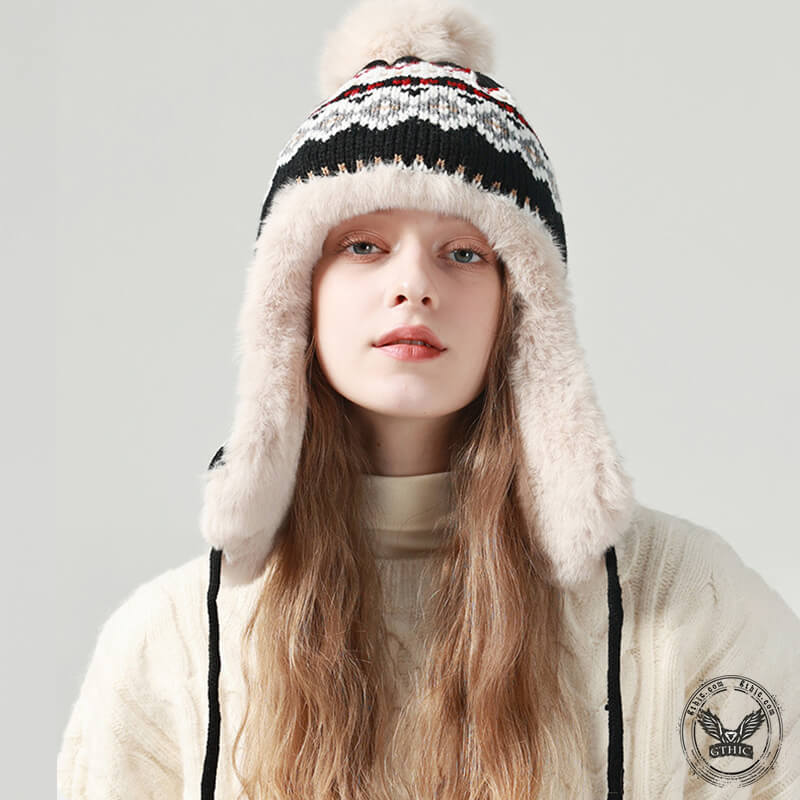 Stay warm and stylish with this Geometric Patterned Knit Trapper Hat. It is designed with a durable, geometric-patterned knit that provides both insulation and breathability. The construction retains heat, protecting you from cold temperatures while being lightweight enough for all-day wear.
